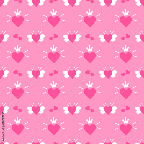 Little Princess Pattern Vector Pink Print Hearts With Wings And