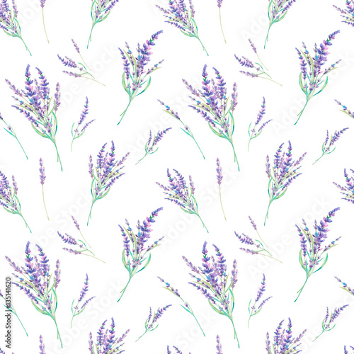 Watercolor Lavender Bouquets Seamless Pattern Hand Drawn Floral