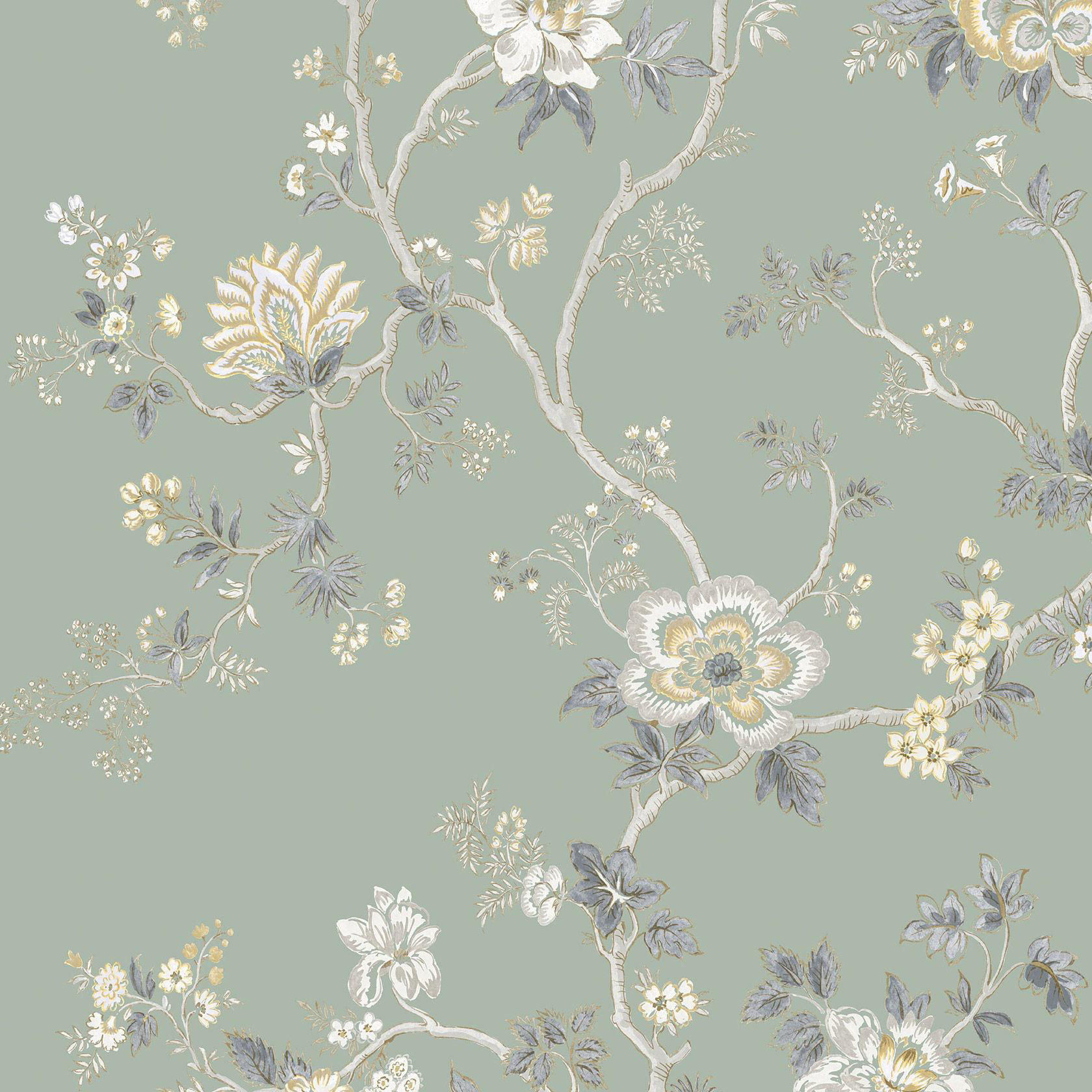 Lewis Wood Indienne Green Glaze Botanic Style Wallpaper Sample