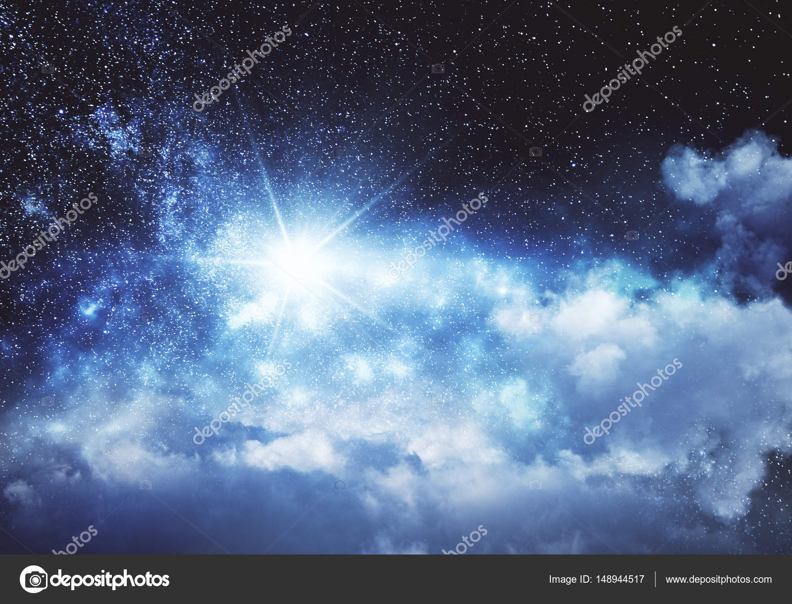 Realistic Starry Sky With Blue Glow Shining Stars Dark Sky